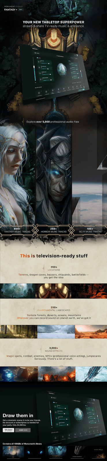 Monument Studios is probably one of my favourite new players in the space. You may have heard them as backing tracks to a game or two, or even on our little podcast version of the newsletter as I actually got given their fantasy complete collection of audio tracks as a gift a year ago.